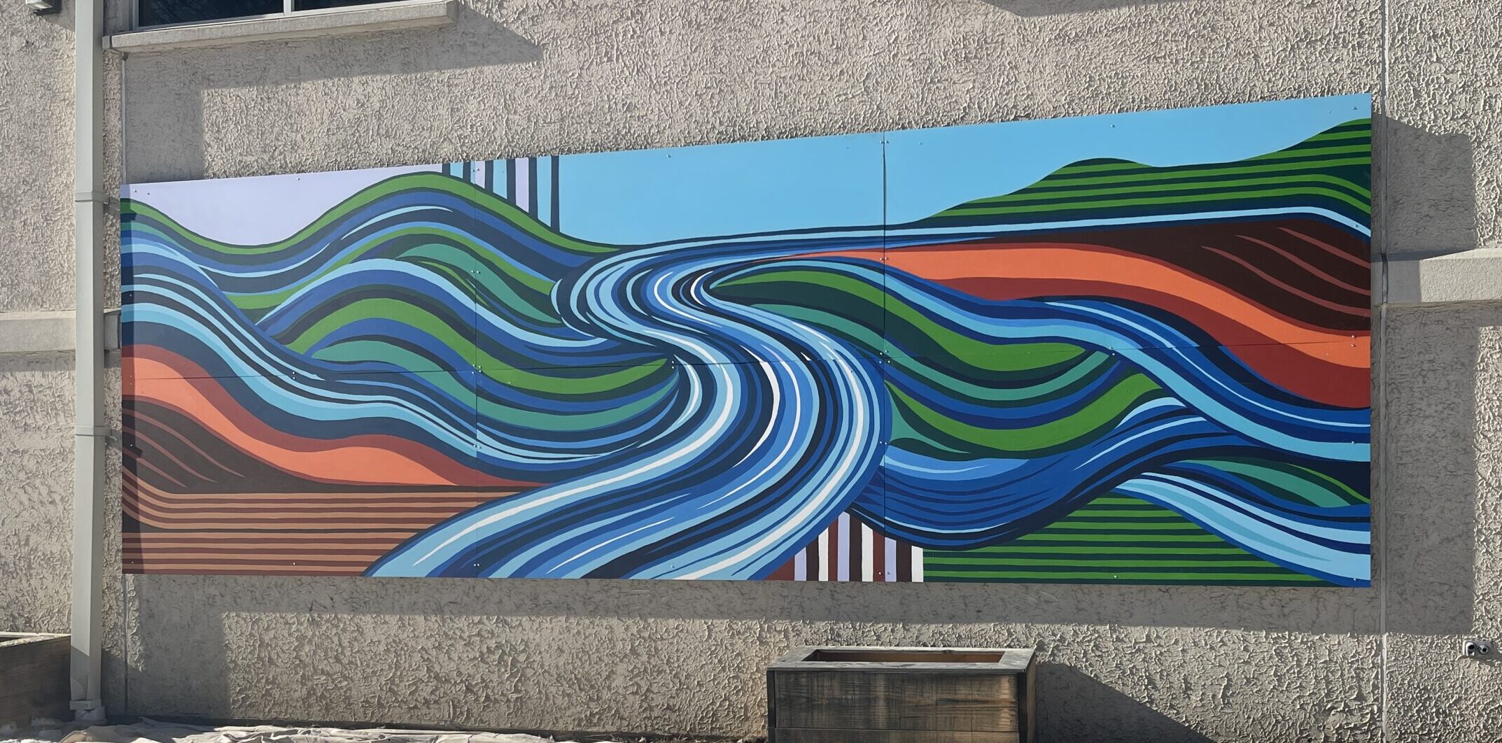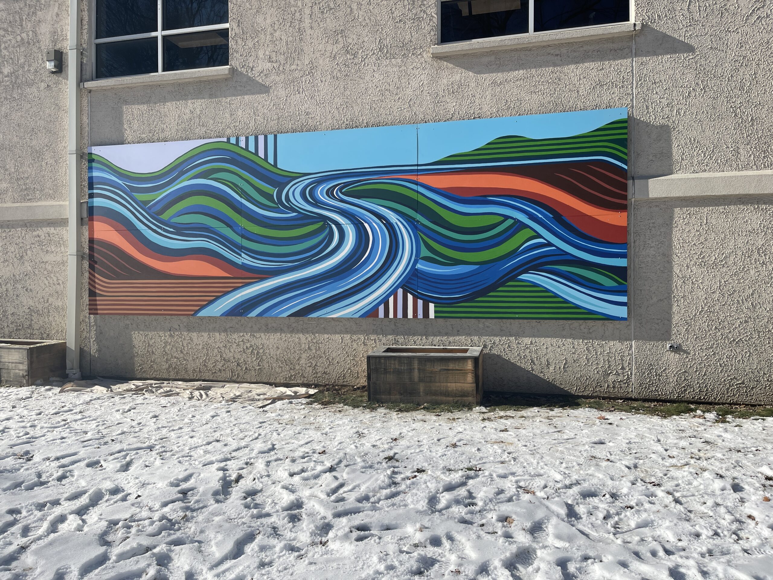 Continuing our partnership with Citizens Energy Group, Big Car collaborated with Indianapolis-based artist John Moore on Waterways, a mural at Municipal Gardens celebrating the DigIndy Tunnel System and its role in protecting the city’s waterways. Painted alongside Citizens staff during the annual Sharing the Dream project, the mural’s flowing blue and green forms reflect the movement, transformation, and environmental impact of this major infrastructure investment.