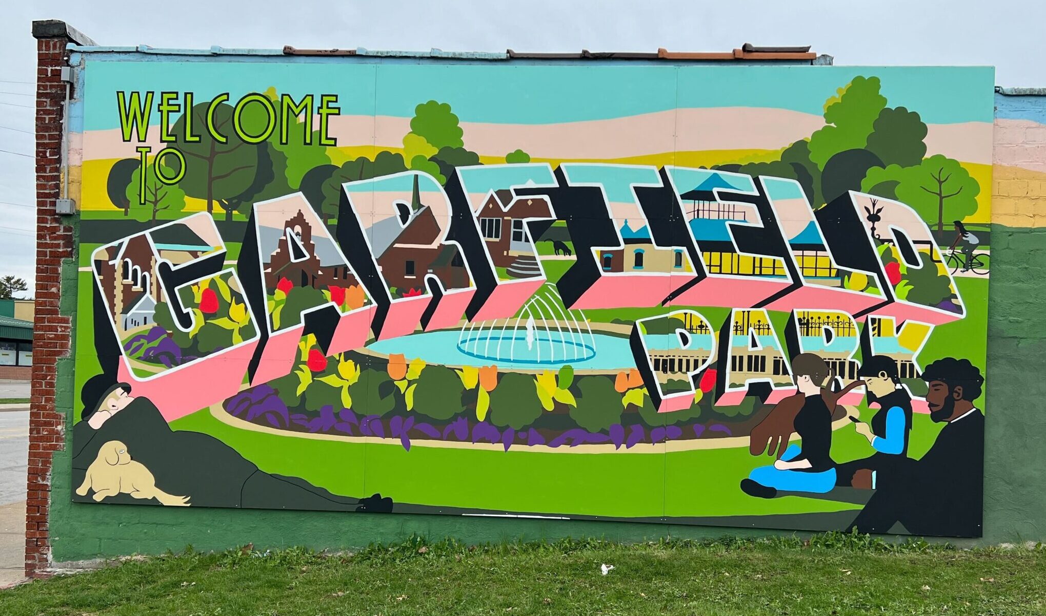 In 2025, Big Car Collaborative worked with the Garfield Park Neighbors Association (GPNA) and artist Andy Fry to restore the Welcome to Garfield Park mural on Shelby Street, renewing a well-known gateway into the neighborhood. Originally created in 2012 with input from neighbors and painted by more than 50 community volunteers, the mural has long served as a symbol of local pride. The recent restoration, thanks to support from the City of Indianapolis through the Indy Arts Council, ensures the mural continues to welcome residents and visitors for years to come.