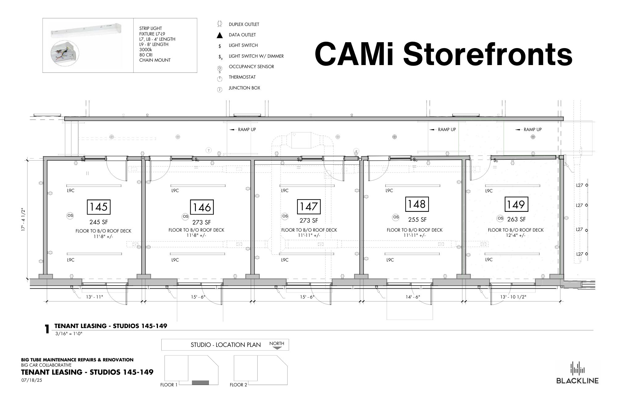 This newly renovated facility owned and operated by the nonprofit Big Car Collaborative includes six storefront spaces with independent entrances for creative businesses and 18 studios or works spaces for artists, designers, and cultural nonprofits.