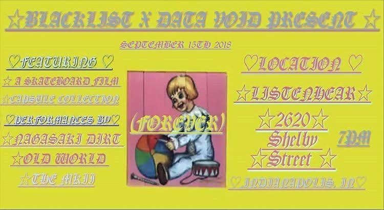 Data Void Premiers their first skate team video along with a new clothing line performances by Nagasaki Dirt, Old World, and The WIKI.