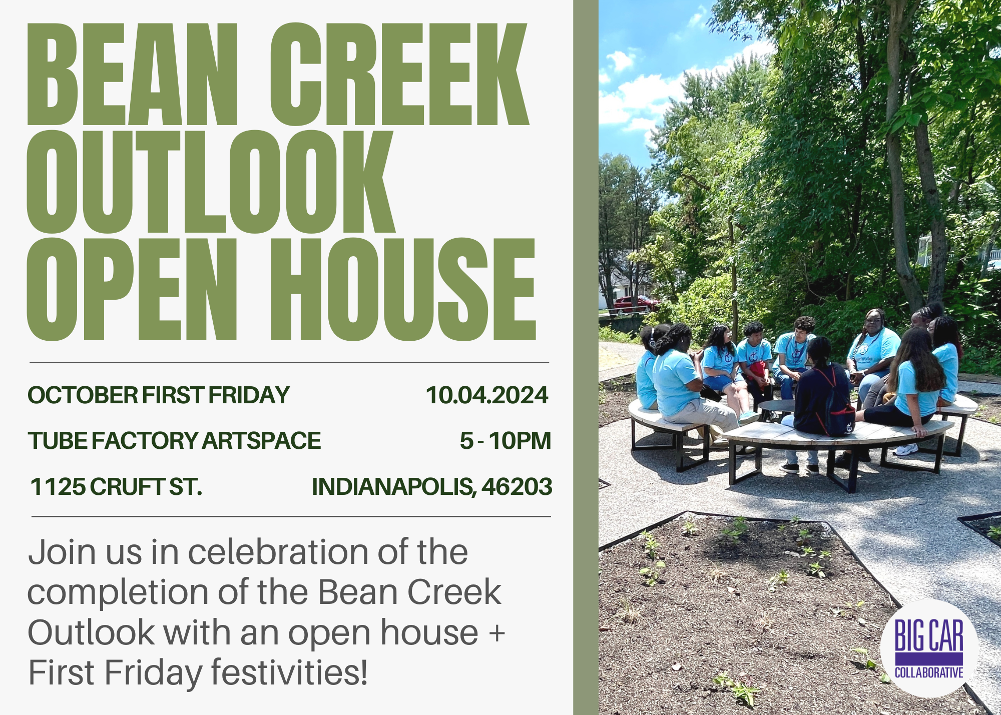 Join us in celebrating the completion of the Bean Creek Outlook with an open house on the October 2024 First Friday from 5-10pm!