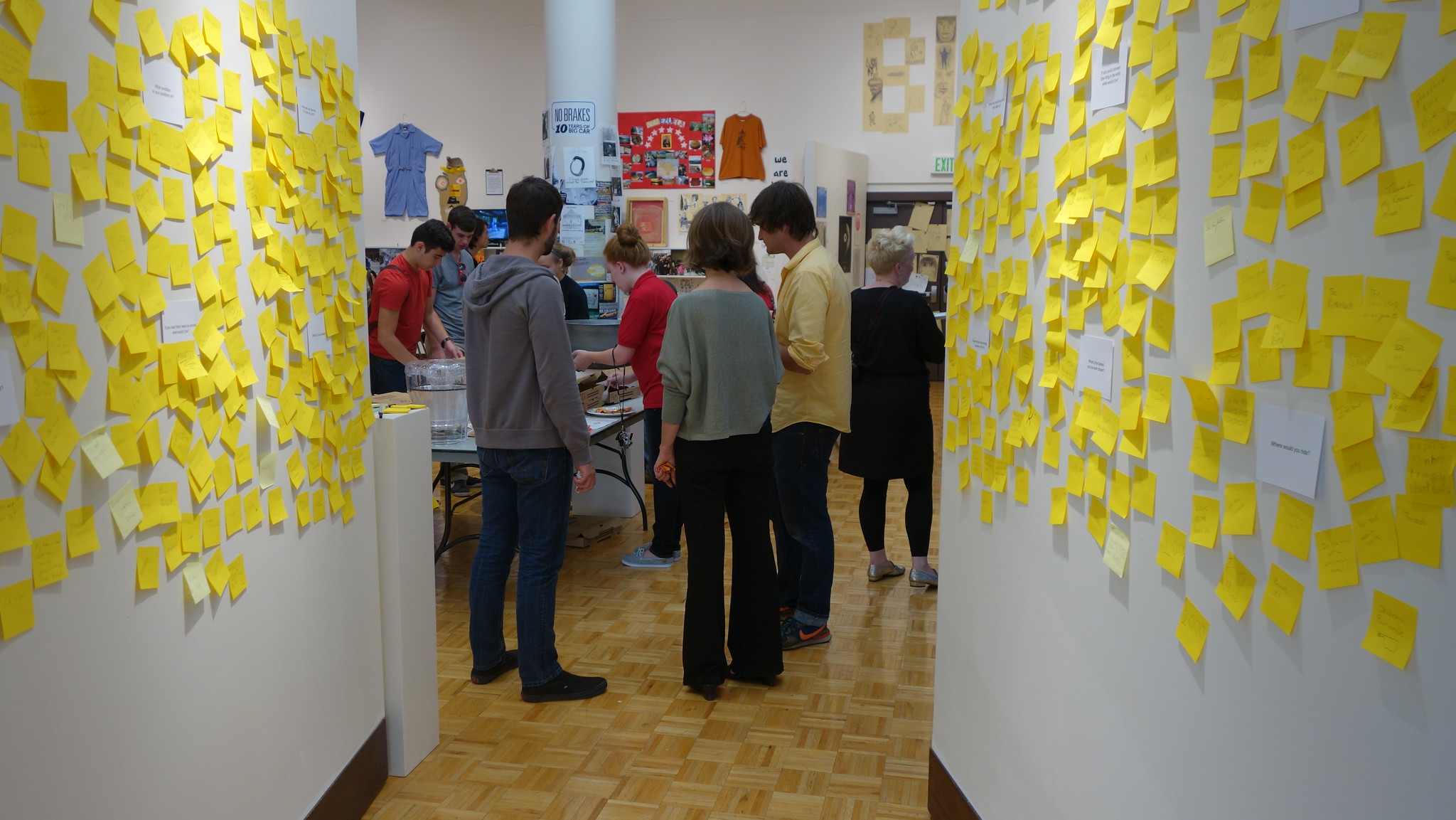 This interactive exhibit in Guichelaar Gallery entails posting a series of questions that YOU answer on sticky notes.