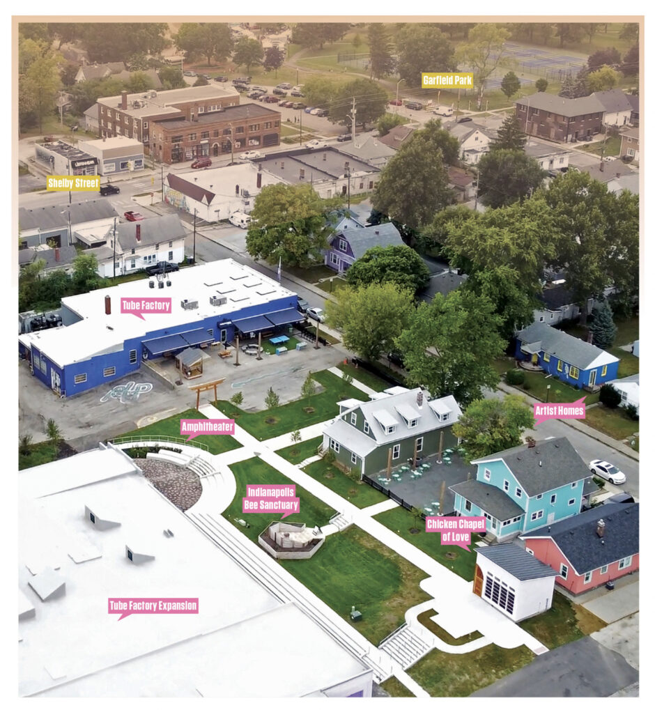 Read more about our current renovation work of homes for artists, a public greenspace and sculpture garden, and a second larger exhibition, studio, theater, and event space funded by Lilly Endowment and Allen Whitehill Clowes Charitable Foundation, Herbert Simon Family Foundation and others here.