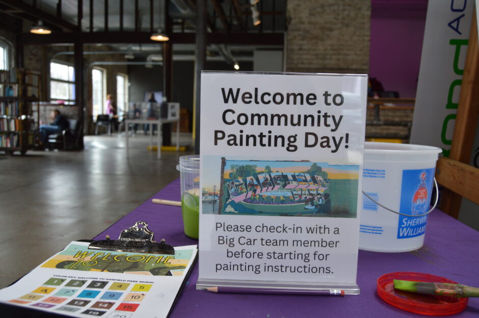 Big Car co-founder and creative director Andy Fry designed the Welcome to Garfield Park mural in collaboration with a large group of neighbors who offered input on the themes and content through a process led by co-founder and executive director, Jim Walker.