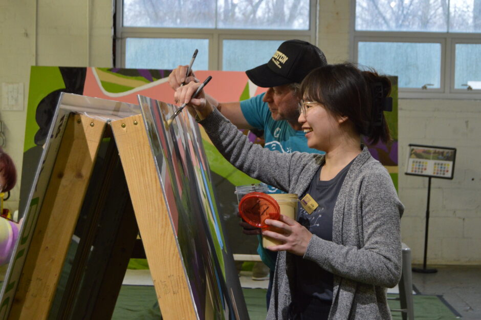 More than 50 neighbors also volunteered to help paint the mural with the Big Car team, working on sawhorses and easels under the towering oak trees as leaves fell in the park. Hard costs of the mural were funded by a grant by Lowe’s and Keep America Beautiful and Big Car staff donated our time to this project.