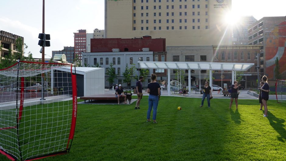 In spring 2019, the Department of Metropolitan Development invited Big Car to work with our friend (and one of our co-founders) Anne Laker of Laker Verbal LLC to activate this big new plaza: applying our placemaking experience and expertise to create a playful vibe for “downtown Indy’s backyard.”